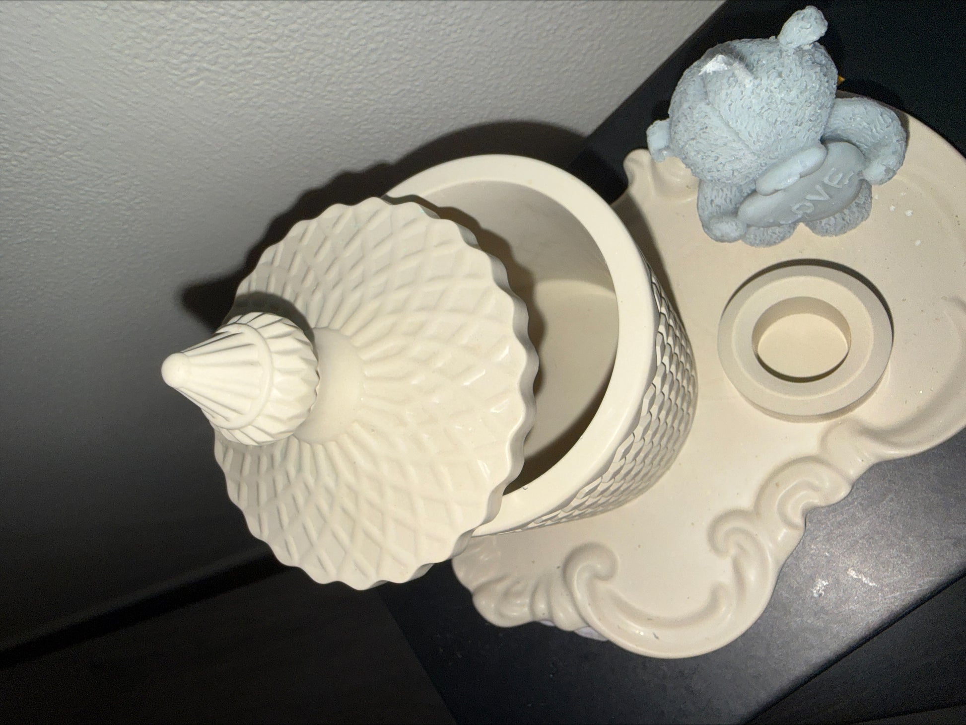 This handmade diamond jar with lid brings a timeless sense of elegance into your home. Each piece is hand poured and finished with a protective waterproof coating that gives it a smooth refined appearance while keeping it durable for everyday use. The diamond texture catches the light beautifully, creating a soft luxurious presence that blends effortlessly into both minimal and warm interiors. Crafted with natural eco friendly materials, the jar offers a balance of style and sustainability that elevates any room.
