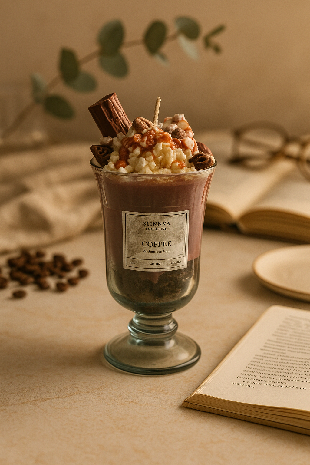 Indulge in the rich aroma and playful design of the Coffee Swirl Dessert Candle. Hand poured into a luxury glass jar, this candle is styled like a creamy café treat complete with whipped cream inspired swirls chocolate accents and cookie like details — all sculpted entirely from natural wax. Every element is crafted by hand using a one hundred percent soy and coconut wax blend for a clean long lasting burn that brings both beauty and fragrance to your space.