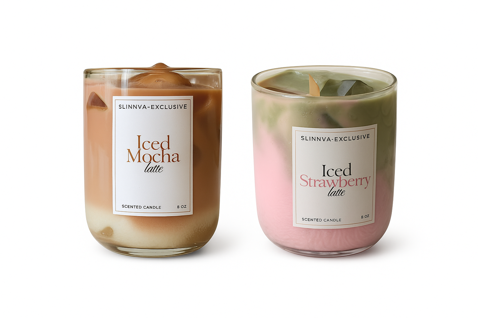 Bring café luxury into your home with the Iced Matcha Latte Bundle, a refreshing duo inspired by your favourite iced drinks. This set includes two handcrafted candles: the Iced Mocha Latte and the Iced Strawberry Latte. Each candle is poured in a reusable heat-resistant glass and topped with realistic gel wax ice cubes for that perfect iced-latte look.